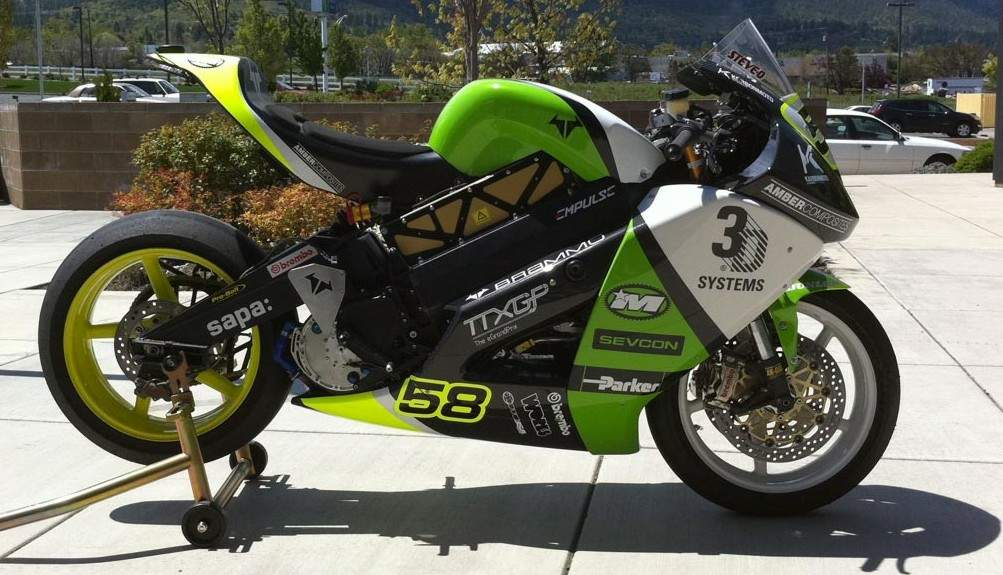 Brammo Racing Green has released first picture of Brammo Empulse RR Electric Race Bike with race livery, which is come with green, white, and black paint scheme. The Brammo Empulse RR Electric Race Bike is getting ready for the 2011 TTXGP series for electric race bikes, where it’ll be competing against the likes of the MissThe Brammo Empulse RR Electric Race Bike is powered by lithium-ion battery pack and large in the extruded aluminum welded frame designed and built by Brammo to Empulse road-trip, although improved for additional output in the form of racing. The tank shape has also been revised to be wider and more lower-torso friendly under braking.ion R, Lightning Motors.