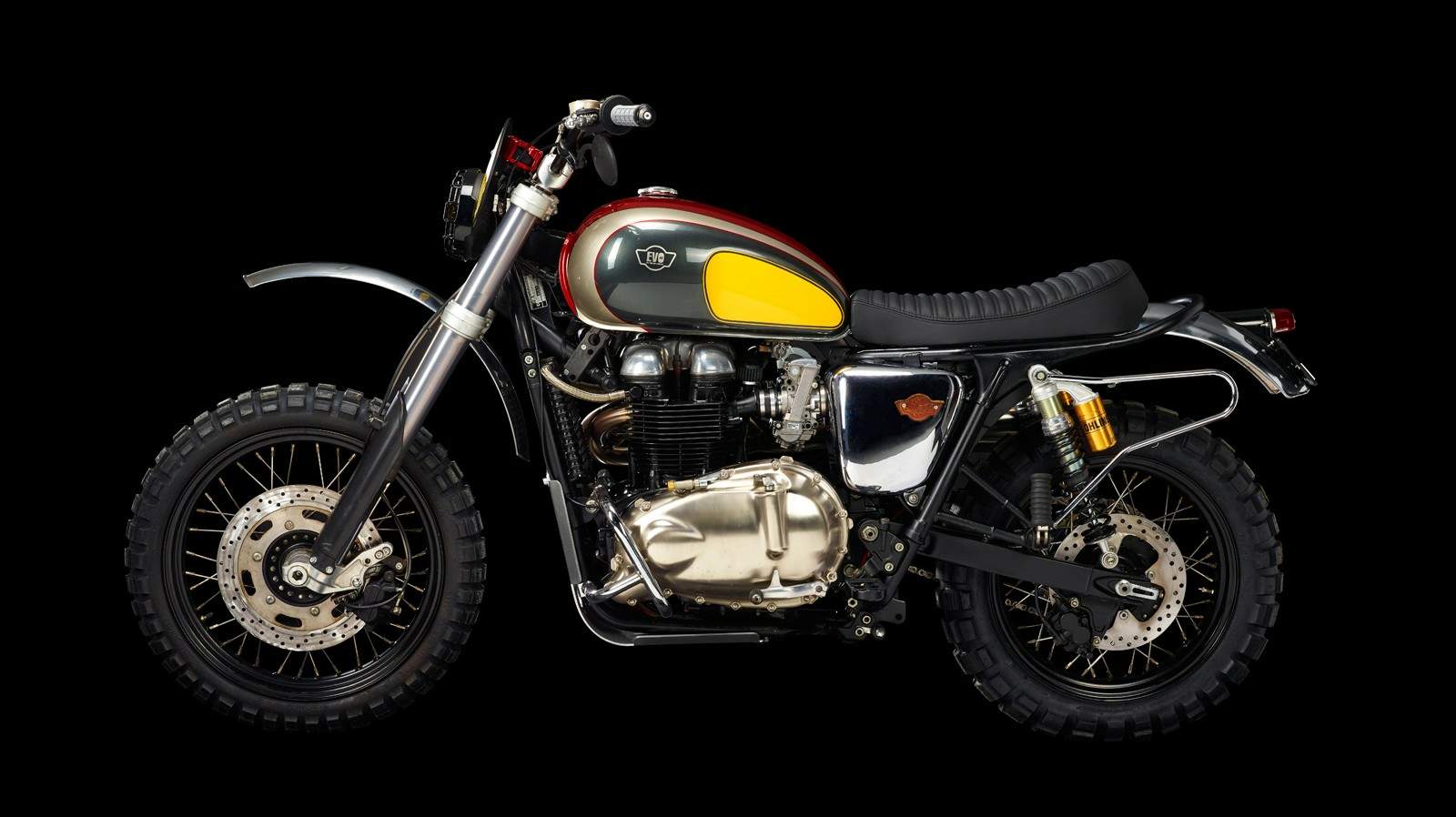 “The inspiration came from the Old Motocross Racing motorcycles, vintage off-road, Steve Mcqueen, Old-Huskies,... It was our goal to build this bike having all those motorcycles in mind that inspired us for this build. Having that in mind, we decided for the final paint scheme we used on the MX EVO #0, which we've felt was more close to our personal tastes and more inspirationally identified with. Technically we wanted to spice this engine, we wanted more power and definitely more torque to improve, above everything, the acceleration! We decided to go for a cc increase passing from 790cc to 904cc (EVO #0 was built on a 790cc Triumph Bonneville from 2005). We've fitted the FCR39 carbs and modified the ECU to increase engine rev limits. The final drive were also changed to a gold colored system and with a big sprocket to increase acceleration, resulting in a limited top speed of around 180km/h. We've also fitted a race clutch to quicken the gearbox changes.”