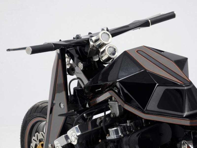 Larry Houghton took a 1983 6-cylinder Honda CBX and build an origami-like frame for it from a one-inch thick aluminum sheet and then bring in a pair of 17-inch Marchesini wheels from a Ducati 916. Create a radical front end, but retain the Ducati’s single-sided swingarm and the thing can go off the stand. The engine and gearbox is pretty much all that remains from the Honda CBX and because the powerplant makes it look so wide it’s called ‘Wide Boy’. It came third in the Freestyle class at the 2010 London Ace Cafe Motorcycle & Custom Show