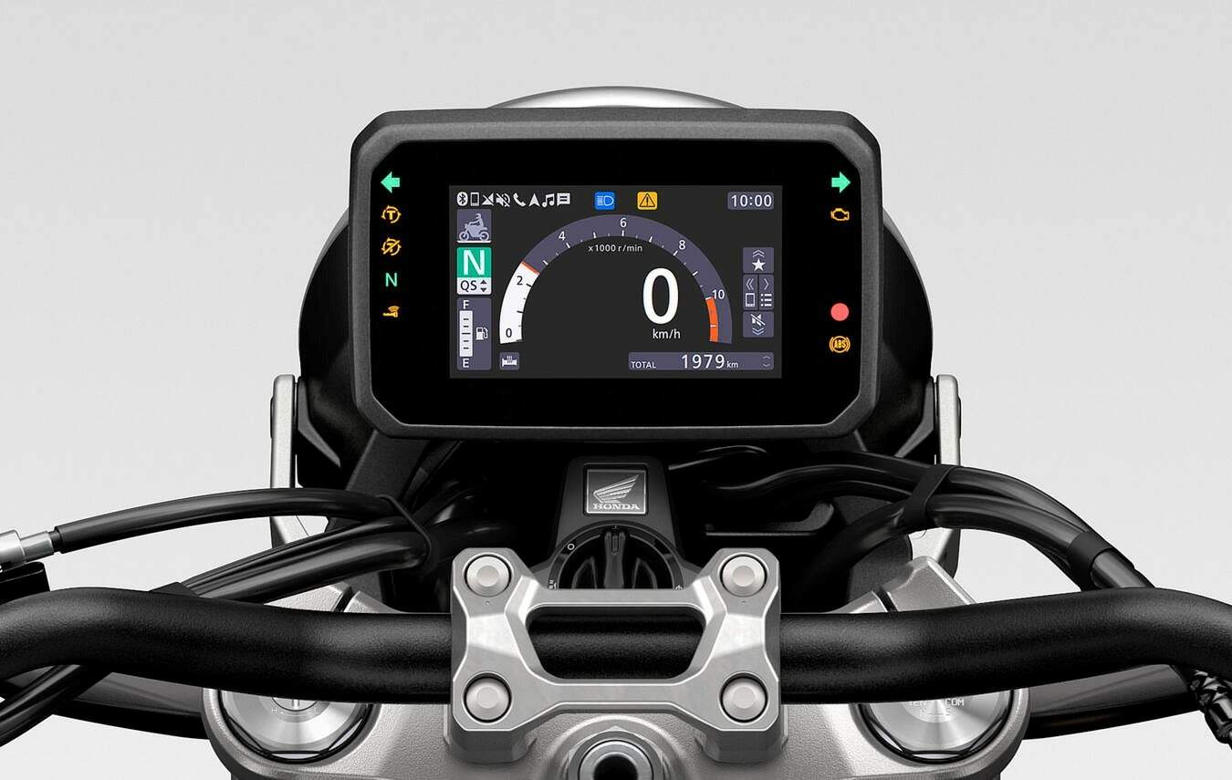 Then there’s the look, of course. The bike’s swooping style is pure ‘80s, a decade making a huge comeback over 40 years on – influencing popular culture in everything from music, style, clothing and more. The clean design of the CB1000F focuses on the essentials, with a strong connecting line flowing from the tank, through the side covers and seat into the rear cowl. The single round headlamp is flanked by twin horns, and the bold tank and side cover graphics are inspired by Freddie Spencer’s high-barred AMA bike. The diamond frame doubles as a design feature, with a bespoke subframe for more seat room. 41mm Showa SFF-BP USD front forks and Showa rear shock deliver adjustable, high-quality suspension control, with bespoke settings and Pro-Link rear suspension for a supple all-round ride. Four-piston radial-mount front brake calipers – with bespoke tune – work 310mm floating discs while cast aluminium wheels mount 120/70-ZR17 and 180/55-ZR17 front and rear tyres. A six-axis Inertial Measurement Unit (IMU) is now at the centre of ride control. Throttle By Wire (TBW) delivers three default riding modes with preset combinations of Power, Engine Brake, Wheelie Control and HSTC settings, plus USER option allowing the rider to choose their own preferred settings. The optically bonded five-inch TFT screen offers intuitive usability, clarity even in bright light, and Honda RoadSync smartphone connectivity through the simple switchgear on the left handlebar. A Honda Smart Key operates the ignition switch. The CB1000F will be available in a range of colour options: