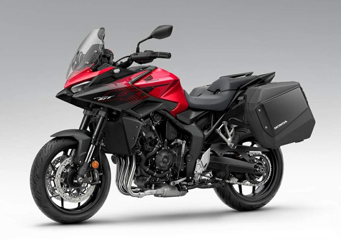 From a press release issued by Honda: In creating the CB1000GT the goal for Honda’s development engineers was simple: take the stunning CB1000 Hornet and turn it into a sports tourer with increased comfort, range and class leading performance. The GT’s sharply chiselled front end was refined through CFD to deliver optimum efficiency through the air, at all speeds, without disturbing either rider protection or handling. Sitting above this is an easy-adjust five-position screen. Equipment levels are high: standard fit are rear panniers alongside cruise control, heated grips, knuckle guards, centre stand and quick shifter. Honda’s proven optically bonded five-inch TFT screen serves up intuitive usability, clarity even in bright light and Honda RoadSync smartphone connectivity through the simple switchgear on the left handlebar. A power to weight ratio of 2.08kg/kW is thanks to the 1000cc, inline four-cylinder engine originally found in the CBR1000RR Fireblade, that produces 110.1kW and 102Nm torque to push a kerb weight of 229kg. Throttle-By-Wire (TBW) and a six-axis Inertial Measurement (IMU) manage the default riding modes, USER mode parameters and Honda Selectable Torque Control (HSTC). The Hornet donates its diamond-style steel main frame with a revised subframe to increase rider and pillion room, as well as geometry adjusted for sharp handling and fully loaded stability. Showa Electronically Equipped Ride Adjustment (Showa-EERA™) suspension offers optimised damping in all riding conditions and situations, as well as the ability to adjust rear spring preload on the move. Braking power is provided by dual four-piston radial-mount calipers up front biting 310mm floating discs, and a mono-piston rear caliper operating on a single 240mm disc. To offer increased confidence in a variety of scenarios and environments, the system operates through the IMU, which has facilitated the inclusion of Cornering ABS. The 26YM CB1000GT will be available in the following paint options: