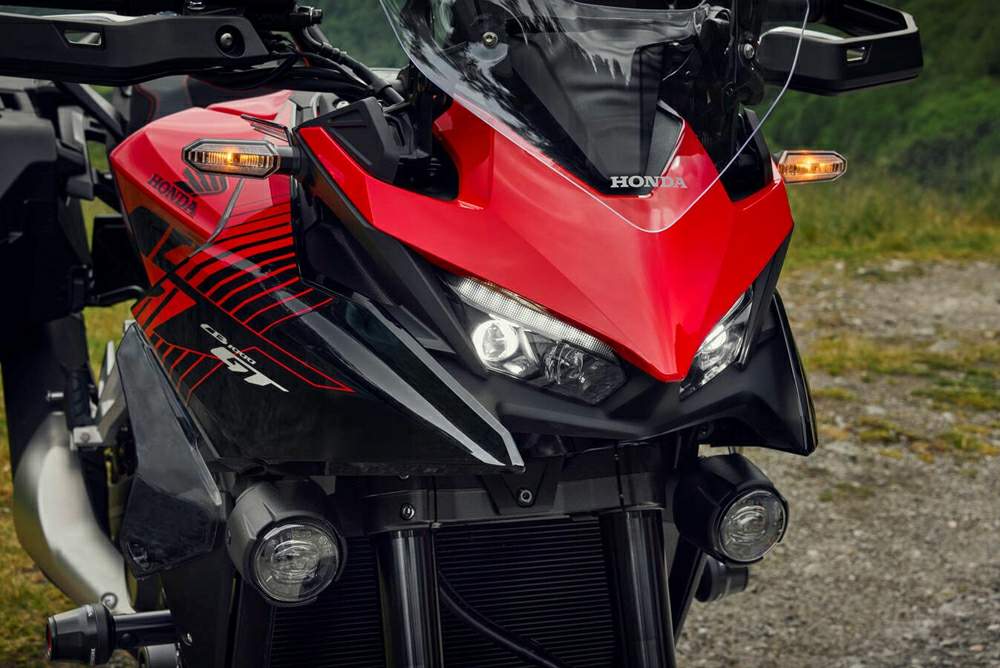 Engine Based originally on the 17YM-specification CBR1000RR Fireblade engine, the 1000cc DOHC inline four-cylinder unit has been given bespoke PGM-FI and TBW settings for its application in the GT. In keeping with its long-distance performance persona, the changes are aimed at producing a smooth power delivery on initial throttle opening, ultimately reducing fatigue for rider, and pillion, on longer journeys. Bore and stroke are set at 76 x 55.1mm respectively, with compression ratio set at 11.7:1. The GT is armed with an almost identical, full-fat top end rush: maximum power of 110.1kW arrives @ 11,000rpm, with 102Nm torque @ 8,750rpm. Honda engineers invested significant time and effort in ensuring that the power delivery is linear, with a torque curve bulging through the mid-range for effortless performance throughout the rev range. Ratios for gears two through five are optimised for acceleration to match the engine’s drive while sixth offers relaxed highway cruising. An assist/slipper clutch offers a light load at the lever, reducing fatigue whilst managing rear wheel ‘hop’ under hard, rapid downshifts and braking. A quick shifter is also standard fit for seamless clutch-less upshifts and downshifts with autoblip function. The engine returns fuel efficiency of 16.5km/L and the fuel tank holds 21L, giving a potential touring range over 340km. Onboard diagnostic ability has been extended to give the bike the ability to detect SO2 (sulphur dioxide), as well as monitor any catalytic converter deterioration, ultimately ensuring the bike is always at peak performance.
