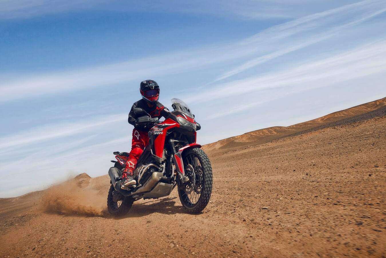 Tailored for complete control, the riding position features a slim section seat and high-set handlebars. Seat height is set at 835/ 855mm. Dual LED Daytime Running Lights (DRL) feature three-stage Cornering Lights that automatically adjust the field of illumination depending on the lean angle, giving optimum visibility for improved safety. Cruise control and heated grips are standard-fit. A full colour Multi Information Display (MID) 6.5-inch TFT touch screen brings immersive engagement with the machine’s systems, plus Apple CarPlay®, Android Auto® and Bluetooth connectivity. The 26YM CRF1100L Africa Twin and Africa Twin Electronic Suspension will both be available in three paint options: Grand Prix Red – with revised frame colour and bolder graphics The 25YM CRF1100L Africa Twin Adventure Sports will be available in two paint