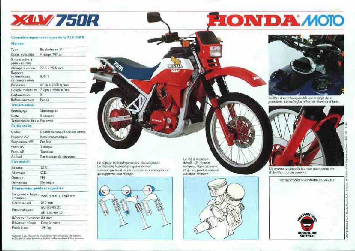 The Honda XLV750R was only in production for a few years, however it provided the basis and was the forerunner of the Transalp and Africa twin. The XLV750R was sold in Europe from 1983 -1986 The HONDA XLV 750 R has been sold from 1983 to 1986, as RD 01 type, as RD version first, presented in 'Salon de la Moto' in Paris in October 1982, and sold from July 1983, in RF version next, after some mechanical and aspect modifications, and sold from February 1985. The major difference between the two versions is the