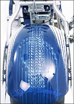 oil tank, pennant valve covers and a gleaming chrome replica of Yankee Stadium,