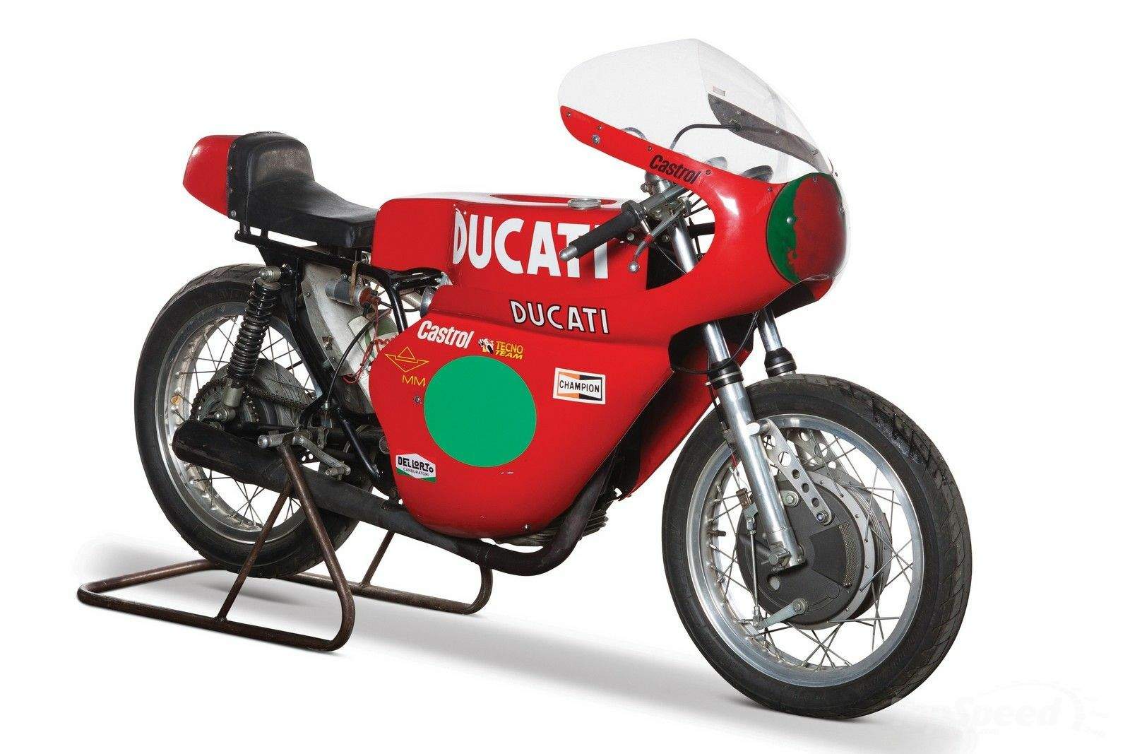 Initially displayed at the 1967 Cologne show, the wide-case Ducati singles were launched in 1968 in 250-cc and 350-cc models and Scrambler and Mark 3 sport bike designations. The 350 engine shared the same specifications as the 350 Sebring and Mach 1/S racer and a 10-to-1 compression ratio. Power comes from a 340 cc SOHC single engine which is combined with a five speeds transmission. The range would soon boast Taglioni’s Desmo engine, and the two models are hard to distinguish, both proving solid, competent race bikes, with excellent brakes and handling. The engine has twin spark plugs and twin distributors, alloy rims, twin rear shock absorbers, special clutch, single Dell’Orto 36-mm pumper carburettor, competition exhaust, twin leading shoe front brake and Veglia competition tachometer.