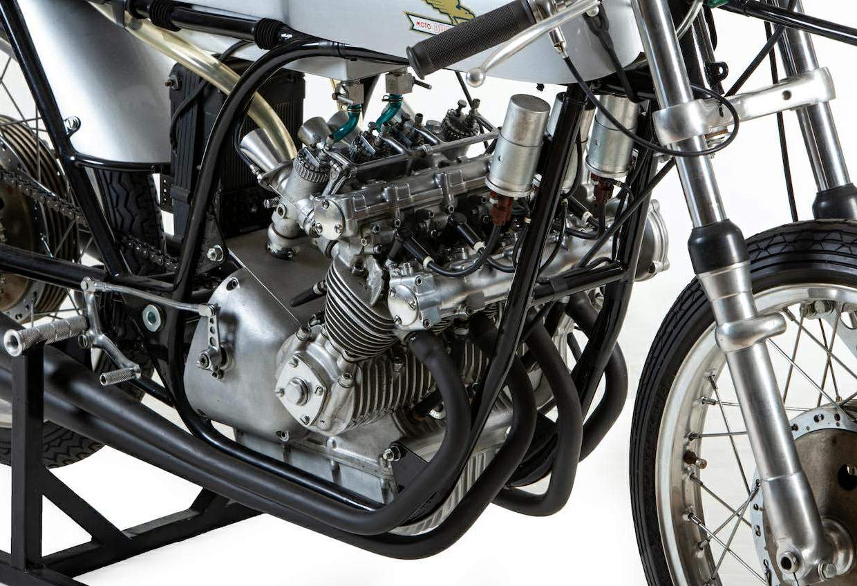 Former racer Franco Farne was entrusted with track-testing the four, but although this proved successful the machine was never raced. Instead it was reduced to touring motorcycle shows around Europe, including London's Earls Court in 1966 and '67.