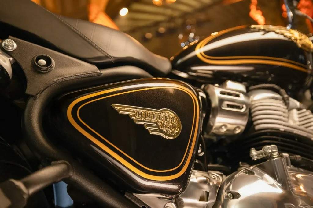 For 93 years, Bullet has personified authentic, uncomplicated motorcycling that has bound riders together across generations and continents. It endures like a heartbeat echoing through the decades, wearing its history with quiet pride. Born in an age of hand-drawn blueprints, while the world around it changed, it has never forgotten its roots. Each new edition has carried forward the essence of the original: simplicity, graceful lines, a sense of belonging to the rich history. Nine decades on, the Bullet debuts a new avatar that pays tribute to impeccable British lineage and indomitable Indian soul. In 2025, the Bullet finds its most powerful expression yet with the acclaimed parallel twin 650cc engine delivering an authentic ride that’s more resolute than ever. Paired with it are the proven steel tubular spine frame, gleaming hand-painted pinstripes, iconic tiger lamps, and vintage-inspired 3D winged badge and a commanding riding stance preserving all the hallmarks that have made this motorcycle an icon for generations. The Bullet 650 carries its legendary DNA forward in every detail. The vintage-inspired bench seat, traditional nacelle, and commanding upright riding stance stays true to the signature Bullet silhouette.