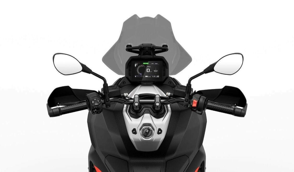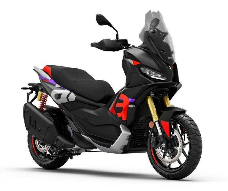 From a press release issued By Aprilia and its website: An embodiment of Aprilia’s motorcycle heritatge. The new mid-size GT scooter embodies Aprilia’s motorcycling heritage, ready to conquer any route – agile and responsive in the city, yet comfortable and unstoppable on even the most adventurous rides. It is pure Aprilia, with an all-new chassis designed to deliver precision and control on the road, yet fully capable of venturing beyond the tarmac. This versatility is ensured by its long-travel suspension – with a motorcycle-type fork attached to the frame by a double yoke – and its tyres with a deeper tread pattern. Riding enjoyment comes from its class-leading weight-to-power ratio, with 36 hp from a modern liquid-cooled single-cylinder engine and a ready-to-ride weight of 186 kg. Standard equipment includes a 5-inch TFT display, keyless system, traction control and ABS – both adjustable and deactivatable. The underseat compartment can hold a full-face helmet and other items, while the windscreen is adjustable to five different heights.