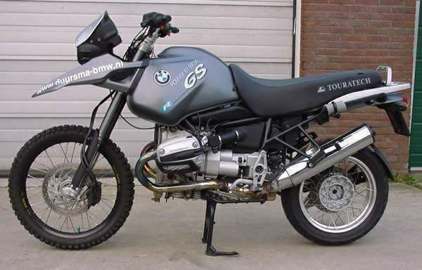 For this BMW GS1150 a special kit has been developed in cooperation with BMW-dealer Bert Duursma from Apeldoorn. This kit allows you to take your BMW Off Road. The kit consists of a specially designed frontframe which replaces the entire original system, a long 'Off Road' WP front fork, an aluminium rearframe and a WP rear shock-absorber. You can also choose between the original spoke and the optional special spoke wheels.