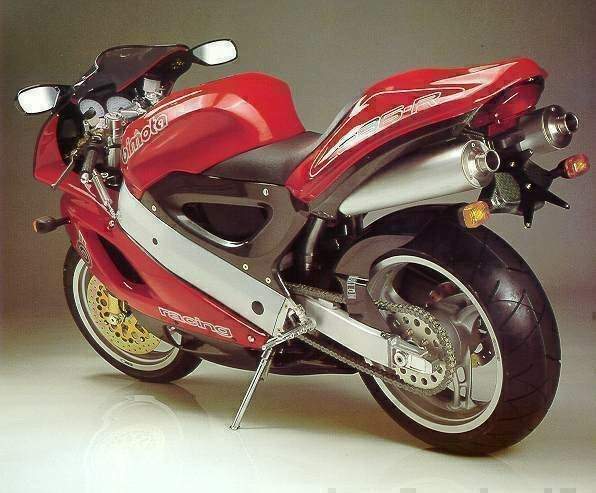 The SB6R followed Blmota's traditional route of taking a powerful Japanese engine from an ill-handling chassis and putting it in a better one. Mainstream Japanese sportsters mostly handled very well from the early 1990s onwards, but the 1993 Suzuki GSX-R1100 was rather overweight. Bimota took its powerful, liquid-cooled 1074cc motor and built an exotic aluminium beam chassis round it. The best wheels, suspension and brake components were bolted on, and the whole lot was swathed in gorgeous single-seat bodywork, with a stunning underseat exhaust system. The Paioli forks, Öhlins shock and Brembo brakes provide excellent handling. The only problem was the SB6R's high price and inconsistent build quality. The Bimota SB6 is one expensive motorcycle, around $35,000 thank you very much. That is a lot of money when the current crop of Japanese hotshots are so good these days, at half the price. But if you are thinking Bimota, you will probably be disregarding price as too much of a factor. You will be after an exotic Italian with a bit of flair.