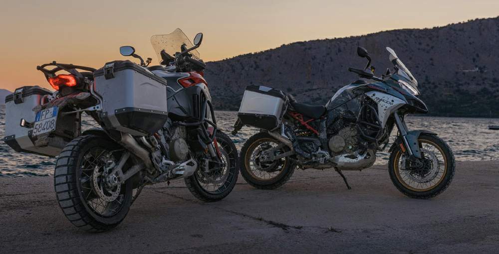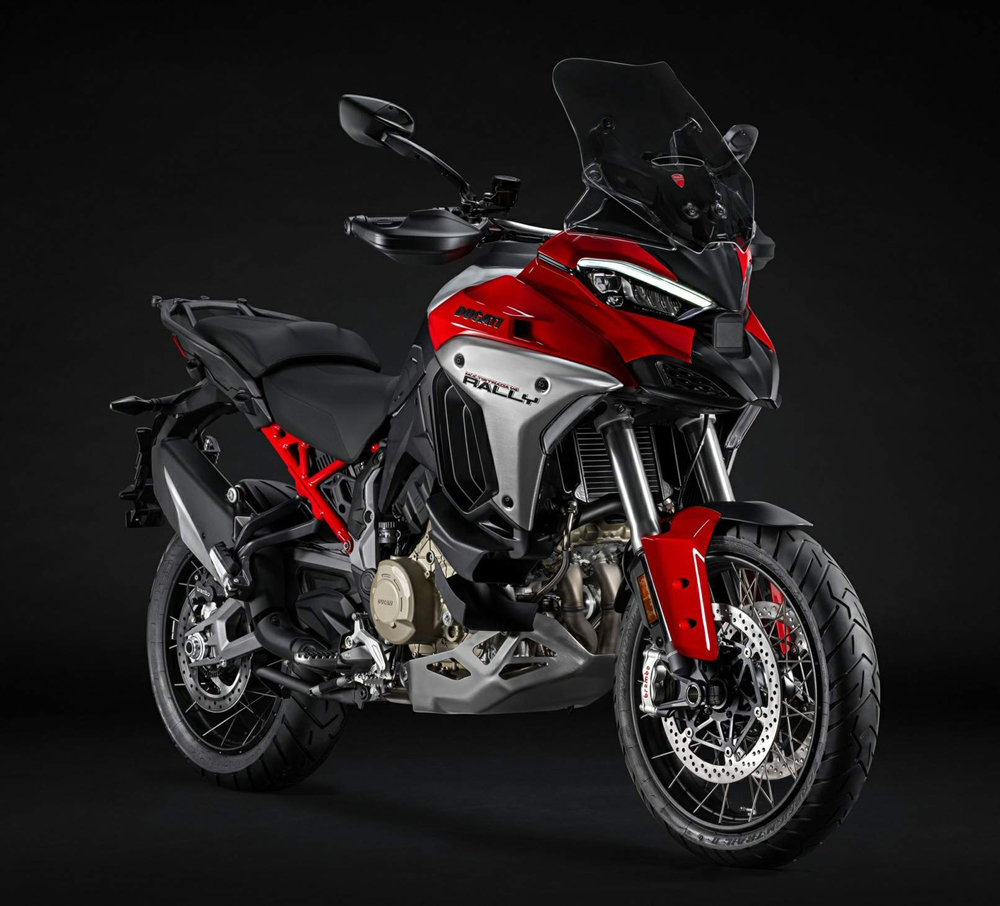 From a press release issued by Ducati: The V4 Rally is the Multistrada aimed at lovers of long journeys. A bike that since its launch in 2023 has proven to be an unstoppable adventure companion, capable of conquering unexplored places, reaching them in maximum comfort. The bike for discovering the world without stopping at anything, alone or with a partner. The new liveries, in Jade Green with gold wheels and Ducati Red with a brushed fuel tank, make the new Multistrada V4 Rally immediately recognizable. A distinctive look that further enhances its technical features: grand touring comfort, great range thanks to a 30-litre fuel tank, and off-road capability thanks to the suspension with longer travel, reinforced engine guards, and spoked wheels. These features are complemented by new chassis and electronic solutions that enhance its versatility, safety, and performance. The Forward Collision Warning anticipates potential frontal impacts, the new Automatic Lowering Device lowers the bike for easier ground contact, and the advanced strategies for the ABS Electronic Combined Braking System and the semi-active Adaptive Ducati Skyhook Suspension EVO are now even more effective in managing any situation and riding style.