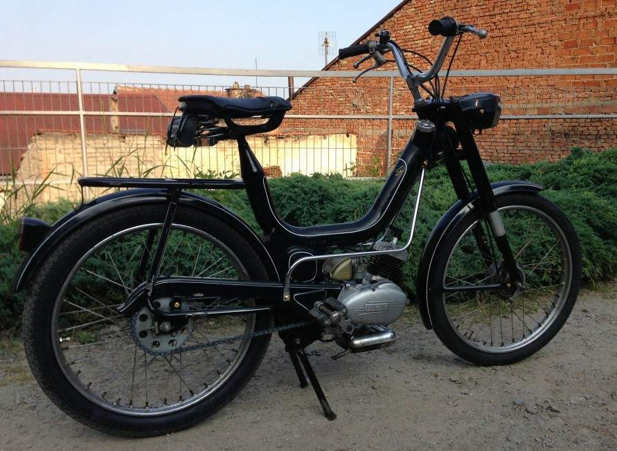Photo: Phil Aynsley Photography Joining the single speed 48 Brisk was the 1968 Rolly with the same single-speed engine in a steel chassis with no rear suspension. The fork was a rudimentary hydraulic telescopic fork and the headlight the later Piuma angular type. The Rolly continued after the demise of the Brisk, but by this time there was no maket for mopeds. Source: Standard Catalog of Ducati Motorcycles, 1946 -2005, Ian Falloon