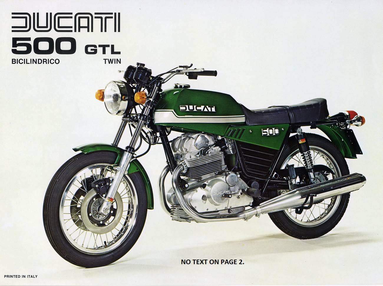 Ducati’s 500GTL parallel twin A largely unloved step-child by Phil Aynsley The oil crisis of 1973 convinced Ducati’s management of the time that a new, cheaper range of models were required and they decided that these bikes needed to be parallel twins. Ducati are renowned for their V-twins, but they’ve produced parallel-twins too This was despite Ducati’s great record of achievements from their single-cylinder motorcycles followed by Fabio Taglioni’s success with his 750 V-twins and the work he had already completed on what was to become the Pantah. Taglioni would have nothing to do with the development of the parallel twins which saw Ing. Tumidei overseeing the design which stressed reduced manufacturing costs as a primary goal. While Ducati had shown prototypes of two different 500 parallel twins in 1964 and 1968 the new design had nothing in common with them. Originally conceived with a 360º crankshaft, this was soon changed to a less 180º crank for less vibration. The new GTL parallel twins would arrive in 350 and 500 cc versions in 1975
