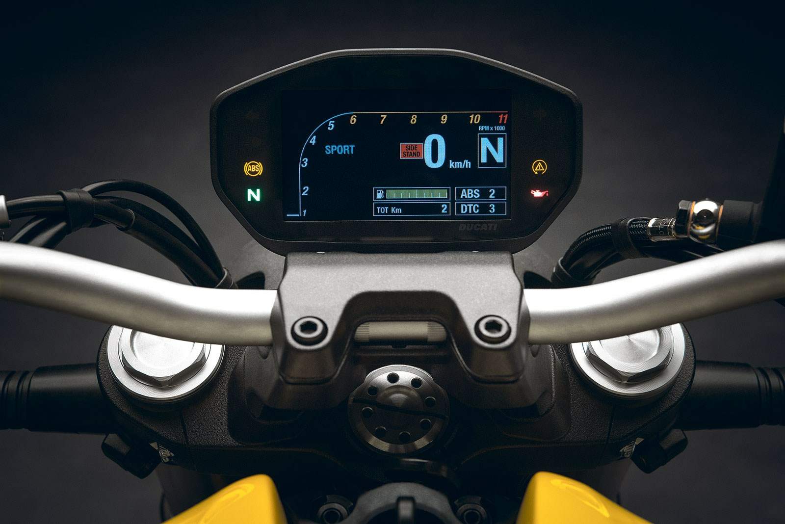 characterised the front end of the Monster of each generation. The Monster 821 instrument panel features a colour TFT display