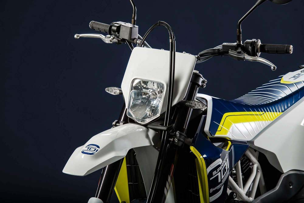 Using a unique frame, the Husky 701 comes in at 320 pounds. The white wonder is slightly larger than the KTM 690 Duke, with a 58.3-inch wheelbase (up by 0.6 inches) and a seat height of 35 inches (compared to the KTM’s 32.9).