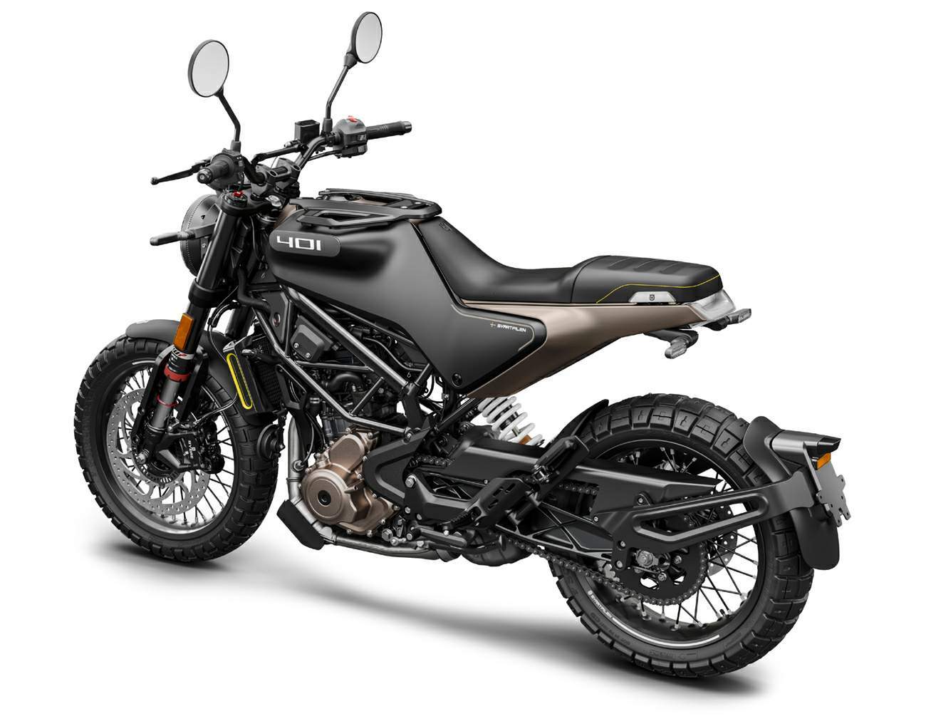 Wheels and tyres A design highlight of the Vitpilen and Svartpilen models are the 17” spoked wheels. The wheels are very robust, offering premium reliability on challenging terrain while bringing a maximum of agility to the urban use-case. Pirelli Scorpion STR tyres are fitted to the wheels of the Svartpilen models and have not only a unique visual appeal but also offer exceptional grip on a wide variety of terrain. The Vitpilen 401 is mounted with Metzler M5 tyres. · 17” spoked wheels → stylish and robust · Pirelli Scorpion STR → exceptional grip on a wide variety of terrain · Metzler M5 -> sporty feedback and high safety Design Central to the Vitpilen and Svartpilen models is their progressive design. Unnecessary gimmicks are stripped away to create a simple, progressive mix of modern thinking and classic design philosophies from previous eras. This way of thinking is synonymous with the Swedish heritage of the Husqvarna brand and is clearly seen in a design which is comprised of only what is needed. The design additionally incorporates premium features and finishes, with subtle highlights such as LED lights front and rear. The headlight features an LED daytime running light while the rear light is integrated into the tail unit. The number-plate holder is fixed to the swingarm giving the rear end a clean and uninterrupted look. · Progressive and simple design · Premium finish and components → high level of quality as standard Bodywork The lightweight and narrow bodywork integrates the fuel tank cover into the side panels and allows the rider to move unhindered between riding positions. The new, quality painted finish with subtle accents highlights the progressive and unique Vitpilen and Svartpilen design. In addition, the skid plate mounted as standard below the engine casing conveys the urban design character while also protecting the engine. · Striking new graphics highlight the unique design Fuel tank Seamlessly integrated into the design, the 9.5-litre fuel tank is a focal point of the design. The fuel tank cover is combined with the side panels in a one-piece construction allowing the rider to move unhindered between riding positions. Additionally, the Svartpilen models feature a luggage rack fitted as standard to the fuel tank. The rack allows for the mounting of light luggage for added convenience.