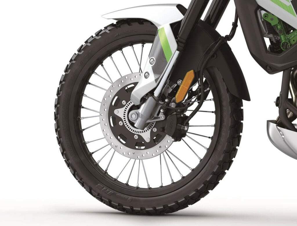 Inspired by Kawasaki’s KX™ series, the KLE®500 ABS motorcycle’s