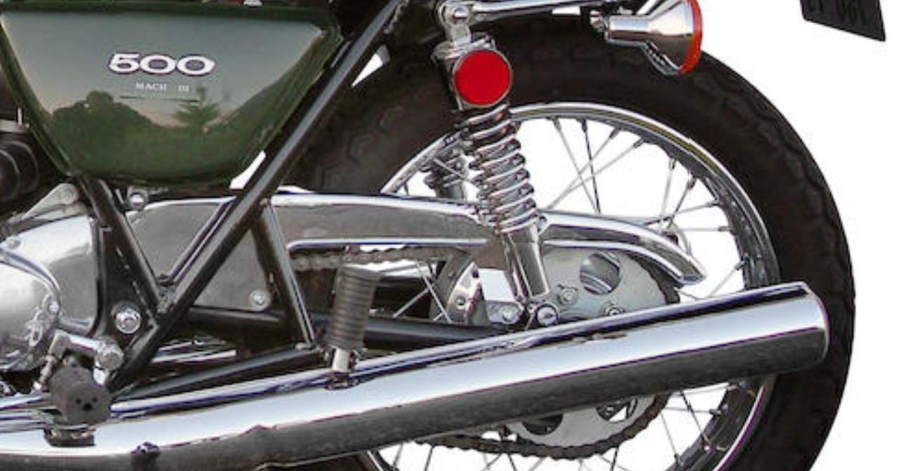 Shucks, at least half the legend's true. Mick's pride and joy was shod with Contis front and rear, each a size up from the original 3.25 x 19in and 4.00 x 18 Japlops and they at least presented no worries. The rebuilt front brake wasn't bedded in, though, and the 7in sis rear drum was no great shakes either, dinky chromed airscoop with adjustable vent an' all. Compare the Mach III with the Uni-Track GPz750 also in this ish and you can see just how far Jap motorcycles have progressed in the last 14 years. In its time the triple was one hell of a radical scoot what with CDI ignition, bare arsed performance, and the rest left to buyers' guardian angels. Riding both bikes really underlines the difference. The CPz is smooth, fast, comfortable: it looks and feels poised and aggressive. The H1 is harder, far more basic and strikingly clumsy in appearance by contrast — 90 per cent of the designers' effort went into its motor and it was four whole years before a serious attempt was made to improve all the deficiencies in handling, braking and styling. They never did manage to do anything about its appalling thirst which rarely delivered more than 30mpg, meaning fuel stops every 60 or 70 miles no thanks to a mean 3.3gal (15 litre) fueltank. It's doubtful whether any Mach Ills ever came close to the 125mph top whack and low 12sec standing quarter times often rumoured: about 110 per and c. 13.5 sees is more likely. Even so, there weren't a lot of 500s around in 1969 which'd better the Kawasaki's sprint figures. After more than a decade, the Mach Ill's reputation has definitely outgrown the motorcycle. Still, it's essentially the right image and it didn't succeed in putting off many riders who wanted the hairiest stroker of the early 'seventies. They didn't buy His in spite of their reputation anyway — they bought them because of it. Source Bike 1983