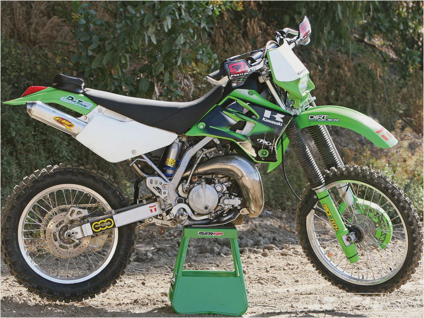 Kawasaki calls the KDX220R a "do-everything off-road bike", and after riding our test unit for a few months I'm inclined to agree with them. During my time with the KDX, I rode it on trails, fire roads, and even a natural-terrain motocross track that we often use for setting up suspension on our MX test bikes. Despite it's age, heft, and relative lack of power, the KDX220R took everything I threw at it in stride and proved an entertaining and comfortable bike for general riding. The 216cc water-cooled two-stroke motor gives the bike excellent rideability, with smooth power delivery and respectable thrust in the low-end and lower mid-range. For relaxed trail riding the low-end grunt makes it easy to ride smoothly without downshifting too often. However, when riding aggressively, particularly on short straightaways connecting two tight corners, I often wished that the KDX would rev out a little further. The motor feels choked up in the top-end; perhaps a pipe and silencer combo would open it up and give a longer pull. The suspension is softly sprung compared to the motocross bikes I typically ride, but it works exceedingly well on the trail, using the entire length of the stroke to soak up bumps and keep the bike tracking straight. The softer suspension means the bike likes to tackle obstacles a little differently than an MX bike, rolling the back wheel and carrying the front through large roller whoops (BMX racers would call this technique a "manual") rather than skipping over the top. Sharp edged acceleration bumps are a breeze, as the combination of suspension action and a thick, plush seat allow you to stay seated longer on the corner exit, keeping weight on the back wheel without punishing your spine and kidneys. Braking hard into a corner, the KDX forks get way down in the stroke, which is both good and bad. The upside is that the front end dive really loads up the front wheel, giving you more confidence in the front end on corner entry. The downside is that with the fork already way down in the travel from heavy braking, there isn't much stroke left to absorb any sharp-edged braking bumps you might encounter. In this situation the fork can feel fairly harsh, and particularly nasty braking bumps can even cause the front end to bottom. However, unless your local trails are hammered by fast off-roaders every weekend, it is unlikely that you will encounter braking bumps like these anywhere but a motocross track. In bermed or rutted corners, the aforementioned fork dive keeps the front planted as you trail-brake to the apex. However, in fast, flat corners the feedback from the tires is sometimes vague, and the back end can sometimes break loose rather suddenly. Overall cornering manners are excellent for general off-road use, particularly on tight, twisty trails. Source Dirt Riker