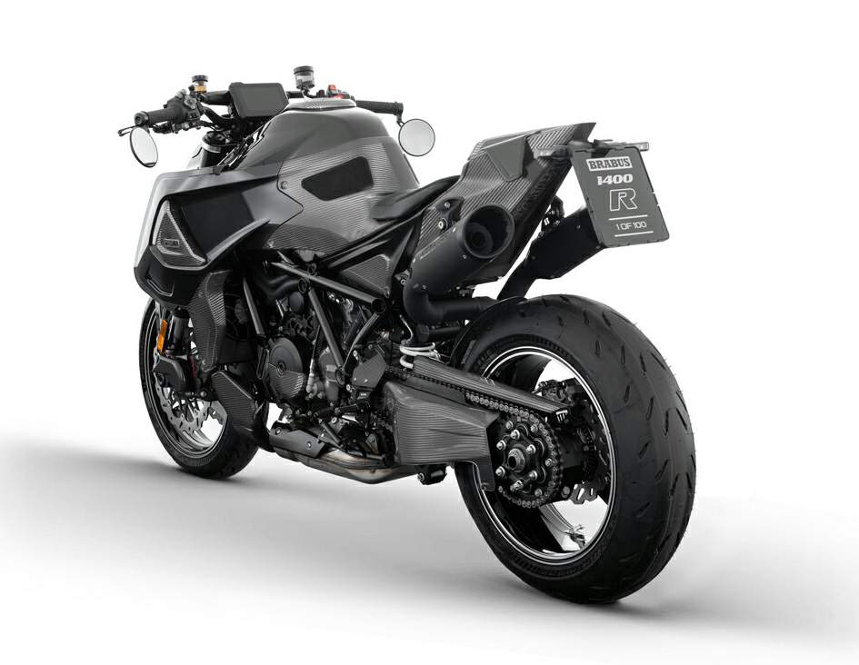 From a press release issued by KTM: The all-new BRABUS 1400 R SIGNATURE EDITION is the successor of the BRABUS 1300 R and the next, most powerful evolution of this extraordinary product range. Production is limited to only 100 units worldwide. Using the 2025 KTM 1390 SUPER DUKE R EVO as its technological platform, the BRABUS 1400 R SIGNATURE EDITION is a statement of raw strength and modern elegance, defined by BRABUS’s signature “Black and Bold” design aesthetic and featuring exclusive WIDESTAR bodywork, precision-engineered carbon fibre components and the BRABUS “Midnight Veil” body colour.