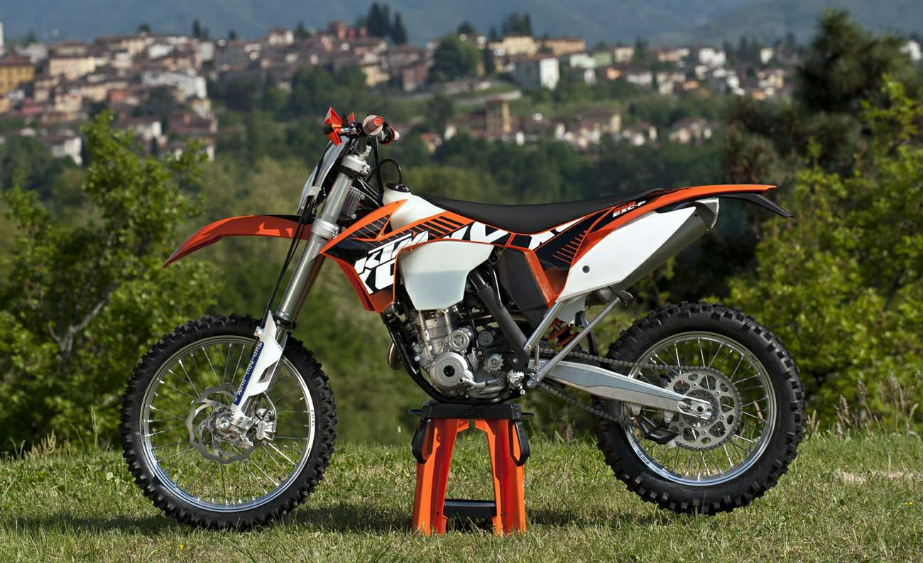 The 250 EXC-F is practically a guarantor for top places in tough and physical enduro sport. Renowned for its powerful performance from deep down up to 13,000 1/min, the new generation is being launched with an even more powerful DOHC four-stroke engine, a new fuel injection system, a new electric starter and a completely revamped, top-quality chassis. The playful handling of the 250 EXC-F is legendary - for all those who want to keep their motorcycle completely under control at all times. The 250 EXC-F's new bodywork with the very slim seat and spoiler lines, plus excellent contact points, perfects the bike's ergonomics, making handling even simpler and more precise. The longer rear fender protects the rider even more effectively from swirled up stones. ELECTRIC STARTER The 250 EXC-F is equipped with both a kickstarter and an electric starter. The redesigned drive for the electric starter is now integrated into the generator cover instead of the engine case, so the bike can be converted into a pure kickstarter simply by replacing the generator cover. NOW WITH EVEN MORE PERFORMANCE The 250 EXC-F's compact, state-of-the-art four-stroke engine excels with a redesigned cylinder head, an extremely wide usable rev range and now with even better performance. A state-of-the-art engine management system with electronic injection, a more powerful generator and a redesigned electric starter make the KTM a hard nut to crack for the competition. VALVE TRAIN AND NEW INTAKE PORT Four titanium valves are actuated in the DOHC cylinder head by carbon-coated cam levers. The 250 EXC-F's elaborate valve train and engine with an extremely short stroke facilitate speeds of up to 13,000 1/min. The further developed intake port now allows 10 % greater gas flow. NEW EFI/EMS The newly developed Keihin engine management system with electronic fuel injection ensures spontaneous responsiveness from the engine. Various engine characteristics can be activated with an optional map select switch. NEW SILENCER The 250 EXC-F's new, improved silencer not only offers greater volume and a new design, it also reduces noise levels to the stricter standards of the future.