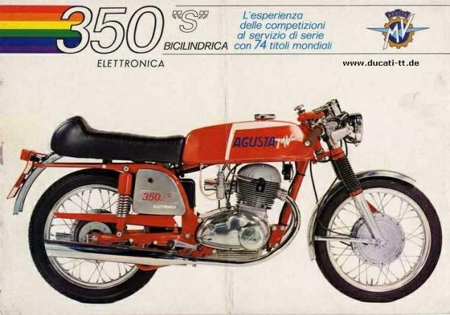 MV's concept of a sports single is robustly efficient — but does the name make up for the bike and its price? "OKAY, SO YOU'RE RIDING an MY 350 —and MY do win the 350 world championship, but the bike you paid $1200 for has a frame like a prewar Velocette and a motor that looks like a split single Jawa two-stroke." In a way he was correct; the makers do stick their rectangular badge on top of the tank boasting the number of world championships they have won. It may be all right for the glamorous 750 but it is completely out of place on this 350 — a bike as far removed from the modern racing bike design as it is possible to imagine. The basic machine was designed in the early fifties and apart from the brakes, suspension and pretty trimmings, is unchanged. The motor looks mid-fiftyish and resembles the old Jawa, just as the observer said. The seat, tank and front end look attractive but they do little to alter the basic image. But the fact is that the motor is sufficiently powerful and durable enough to last for many years to come, and the frame is certainty stiff enough. Such is the MY 350; it is a well-buiit little middleweight with racey lines around an old design that will set you back a cool $1200. We picked up the bike from Bob Jane's new Footscray shop in Melbourne, and took it straight out on the nearby Geelong Road which is a fast multi-laned highway. Like the 750, the riding position is strictly racing — but a good racing one for the hand and foot controls are perfectly located. The few miles through the suburbs confirmed what anyone can expect from rearsets and clip-ons — fun for the first few minutes followed by a gradual feeling of discomfort. Mixing it with the fast-moving, inter-city, highway traffic lifted the weight from the wrists and the 70 mph ride became enjoyable. At this speed a fair amount of vibration can be felt through the pegs and bars. It won't worry riders, but it murdered the little CEV instruments. They're the size of 20 cent pieces, and their lack of accuracy is laughable. Not only are they plus or minus accurate readings at any time (as our speed trap proved later) but they are slow to react. A four-stroke twin, but by curious coincidence the powerplant resembles a much earlier two-stroke. The 350 has undeniably racey lines. At the end of the morning with more than 100 miles of city and highway riding completed we arrived at Calder Raceway to run performance figures. Revving the engine to eight grand produces lively acceleration through the close-ratio gears. Down the long straight and into Repco corner the braking was left quite late — a mistake not to be repeated! The front stopper is a grabber of the first order when the lever is pulled hard. There is not a trace of progression, just one almighty dig-in of the front tyre as the forks slam down to full movement. Presumably the only way to cure this (although we didn't get the opportunity to prove it) would be to taper the leading edges of the brake linings. Leaning it deep into Repco showed the clearance to be good and the quick burst up through the gears along the back straight soon brought us into the esses. After taking the righthander and making a short bit oi' acceleration for the next bend the throttle could just be closed to utilise surprisingiy good braking effect from the engine. Throwing the bike down into the only left hander of the circuit caused one almighty scrape from the centre stand, causing involuntary straightening up which put the bike wet! off on the right hand side of the track for Gtoweave corner. It needed a full track wide S movement to approach the next right hand bend from the correct angle. Down the main straight again and on to the second lap, where a rider could rest the front part of his bucket helmet on the tank cap to achieve the excellent streamlining this 350 offers. We soon forgot the clutch and going up and down the box merely became a few short but firm prods on the lever to maintain the revs between six and eight thousand. Under these conditions the bike returns just under 50 mpg and even after many laps no oil could be seen from any of the engine joints. Though the machine lapped the circuit quite fast for a 350 it did so only because of its tight weight. The actual pick-up is quite sluggish by modern standards and it takes some time before the full 28 horses can be used to their full advantage through the 300 pound bike. We are surprised just how stiff the frame is, but the makers could have obtained the same amount of rigidity by using modern double loop, small diameter, light wall tubing in a triangulated layout. The result would be a substantial weight saving as well as looking a bit more contemporary than the existing configuration. Admittedly a single front tube looks alright but the huge swinging arm mounting plates and those large unsightly bo omerang-cum-banana oval tubes up to the top of the units are not really acceptable nowadays. As an about-town ride the 350 S is certainly lively The controls are also Tommaselli (same as the 750) but the alloy instrument panel holds badly inaccurate instruments. and likes being thrown around, but some people could easily get tired of the out and out racing position and its hard, but beautifully-shaped seat. Starting is reasonably easy from the touring type Del'orto carbs even though the lever is on the left side. We found neutral hard to find sometimes and the small diameter 6 volt headlight only suitable for lit roads. On the mechanical side the bike should last a long time because it is hand-built out of substantial components. The front end is exceptionally strong with efficient forks holding the big 8 inch brake, Sanremo alloy rim, stainless guard and those immaculate Tommaselli controls. That old-looking engine could give its best for many years if an owner fits air filters on the twin carbs. The chromium plating on the exhausts is thin and the bracket that hotds the silencer on to the frame will rust