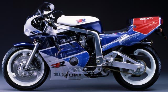 The luscious and expensive limited edition GSX-R750R was released to Japanese market with a return to the long-stroke motor of the F/G/H models. 500 limited edition (some claim 1000) GSX-R750R ( the 'Double R') serving as ready-to-race platform The newly redesigned engine reverted to the original long stroke (70 x 48.7mm) configuration. Crankcase, crankshaft connecting rods and clutch were among the critical areas receiving more attention necessary for the race duty. The 'Double R' also received new 40mm Slingshot carburetor and 4-into-1 exhaust pipe as well as close ratio gearbox, rear swing arm with sub frame, new aerodynamic fiber with large air intake duct, solo seating with race number box and 19 liter aluminium fuel tank as standard equipment. The dry weight measured, 187kg. When the Suzuki GSX-R750 was launched in 1985, it