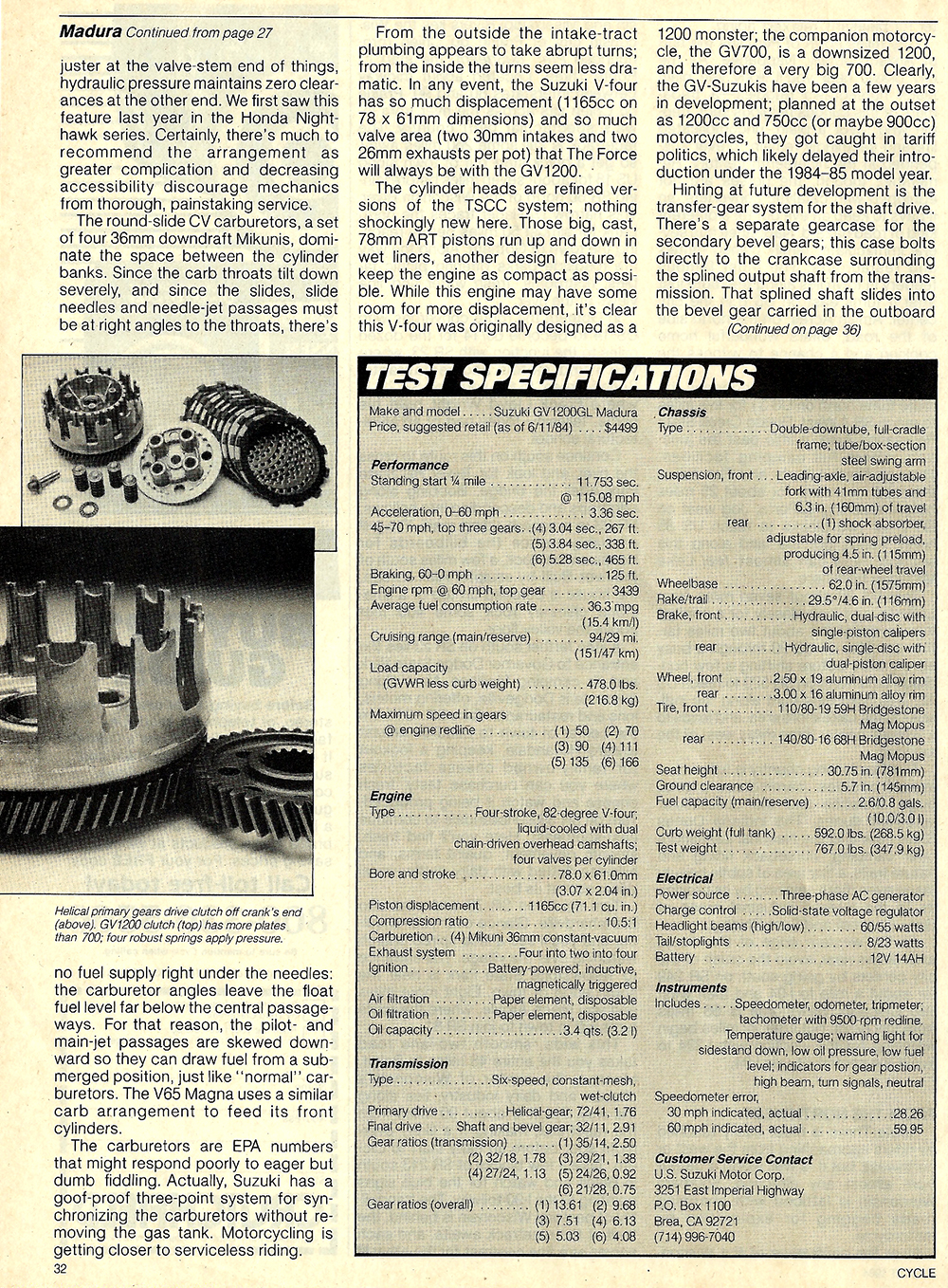 Suzuki Madura was a cruiser motorcycle sold by Suzuki in 1985 and 1986. It was