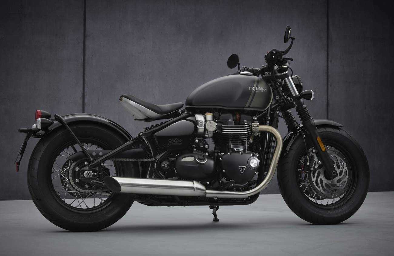 New blacked-out style and detailing The Bobber has all of the signature hallmarks and beautiful details that are widely appreciated worldwide – minimal steel fenders with a centre ridge and return edge, wide flat bars with broad, adjustable levers, sculpted top yoke, rubber gaiters, classic rear ‘drum brake’ inspired hub, side-mounted ignition barrel, black painted bar end mirrors, LED bullet indicators and a new, signature full LED headlight. For added visibility and where market legislation permits, for 2021 the headlight features Triumph’s signature LED Daytime Running Light. And adding to the minimalist style for 2021 are new black engine covers, cam cover and sprocket cover, giving the Bobber a new, meaner, moodier edge. For 2021 the instruments feature a new bezel, including a metallic embellisher with subtle Bonneville branding. There’s a new dial face, with translucent silver markings, and more integrated warning lights. The multi-function display is controlled by an easily accessible handlebar mounted scroll button. The new 2021 generation Bobber comes in three distinctive colour options, with a new Matt Storm grey and Matt Ironstone scheme, a new Cordovan Red scheme, and a classic Jet Black option.