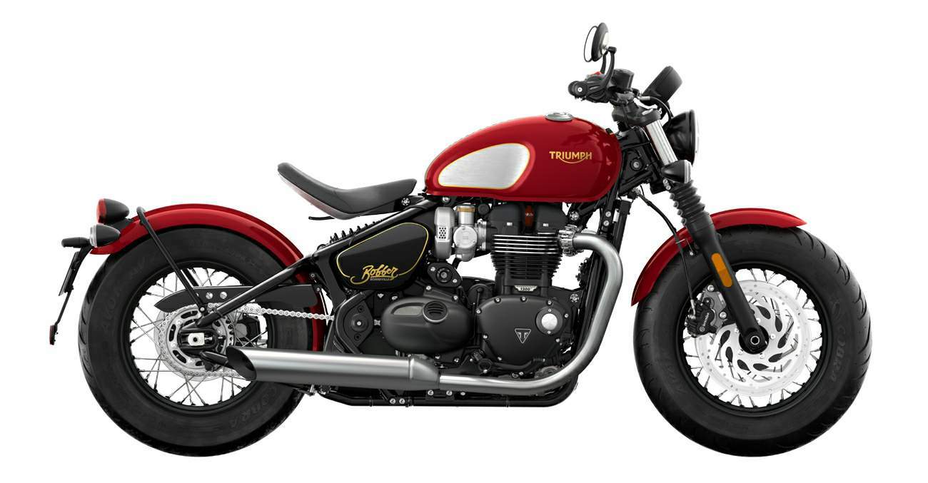 Bonneville Bobber Gold Line Edition - Carnival Red fuel tank and mudguards,