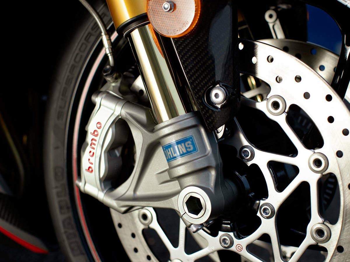 The new Daytona also features Pirelli’s latest-generation, highest-performance road tires, the Diablo Supercorsa SP, the optimum application for unmatched road and track precision. There’s also the high-specification race-proven Öhlins front and rear suspension – a 43mm NIX30 front fork and TTX36 rear shock – both fully adjustable for preload, compression and rebound.