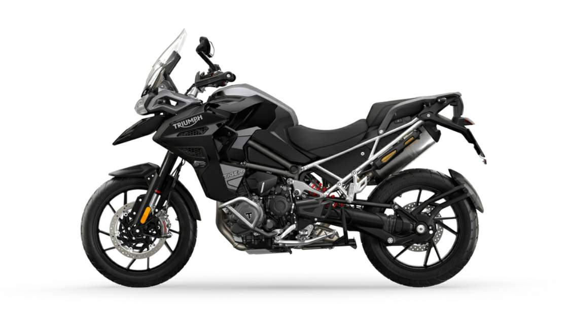 THE BEST OF ALL WORLDSThe result of one of the most ambitious projects in Triumph’s history, the all-new Tiger 1200 line-up represents a transformation in weight, performance and capability, all focused on delivering every advantage a rider is looking for in their adventure motorcycle. Building on the previous generation’s strengths, including its practical shaft drive set-up and its great long-distance comfort, plus the triple engine platform which suits touring so well, the new Tiger line-up introduces a new generation of T-plane triple engine, lightweight chassis and advanced technology – all focused on delivering the most agile and capable large capacity adventure motorcycle you can buy. ALL-NEW TIGER 1200 FAMILY With all-new names to reflect the new capability, each Tiger 1200 model is now more tailored and focused to suit the adventures that different riders want. The new road-focused GT and higher spec GT Pro come with cast wheels, 19” on the front and 18” on the rear, plus all-new Showa semi-active suspension, tuned to deliver the ultimate road-focused adventure ride. With the new Rally Pro, this brings for the first time a dedicated 21” front and 18” rear tubeless wire-spoked wheel set-up, plus the new Showa semi-active suspension with even longer travel, tuned to deliver the ultimate in all-terrain riding, off-road and on. Completing the new 5 bike line-up, for the first time Triumph introduces two new 30 litre tank Tigers, with the new Rally Explorer and the GT Explorer – the only cast wheel, 30 litre tank, adventure bike in the class. Both featuring the new Triumph Blind Spot Radar system, these bikes are built to travel the world in comfort and style, with the highest level of specification and capability ever. ALL-NEW T-PLANE TRIPLE ENGINE Designed to deliver all the advantages that have made the Triumph Tiger 900 so successful in the middleweight category, the new the T-plane triple crank brings the best of both worlds, with the low down tractability of a twin at the bottom end, making it great off road, combined with the performance benefits of a triple at the top end, which makes the Tiger even better on the road where riders spend most of their time. Technically, the T-plane crank gives the new Tiger 1200 engine firing pulses at 180, 270 and 270 degrees, resulting in one short gap and two long gaps between the firing, delivering improved character and tractability at low rpm. The new 1160cc engine brings a major step up in performance with 150PS peak power at 9,000rpm, 9PS up on the previous generation, making it the most powerful shaft drive motorcycle in the class. The torque is also significantly higher than the previous generation, with 130Nm of peak torque at 7,000rpm, 8Nm up on the previous engine. In addition to the step-up in power and torque, the new engine, tune and T-plane triple crank also bring improved acceleration and a much more responsive and exciting character, where the uneven firing interval gives excellent feel and tractability at the bottom end, combined with the really strong triple power and torque delivery all the way through the rev range. Completing the transformation, every Tiger features the new lightweight low-maintenance shaft drive, a key practical advantage valued by adventure touring riders. Compared to the previous generation engine, absolutely everything is new, including new bore and stroke, crank, cylinder head, gearbox and clutch, and a completely new shaft drive and bevel box. Overall, every single component has been designed to be significantly lighter and more compact, which has allowed the new engine to have a much tighter overall package, transforming the riding dynamics. Add to that the new minimal lightweight silencer, and the result is a significantly enhanced soundtrack, with a new distinctive triple tone and bark.