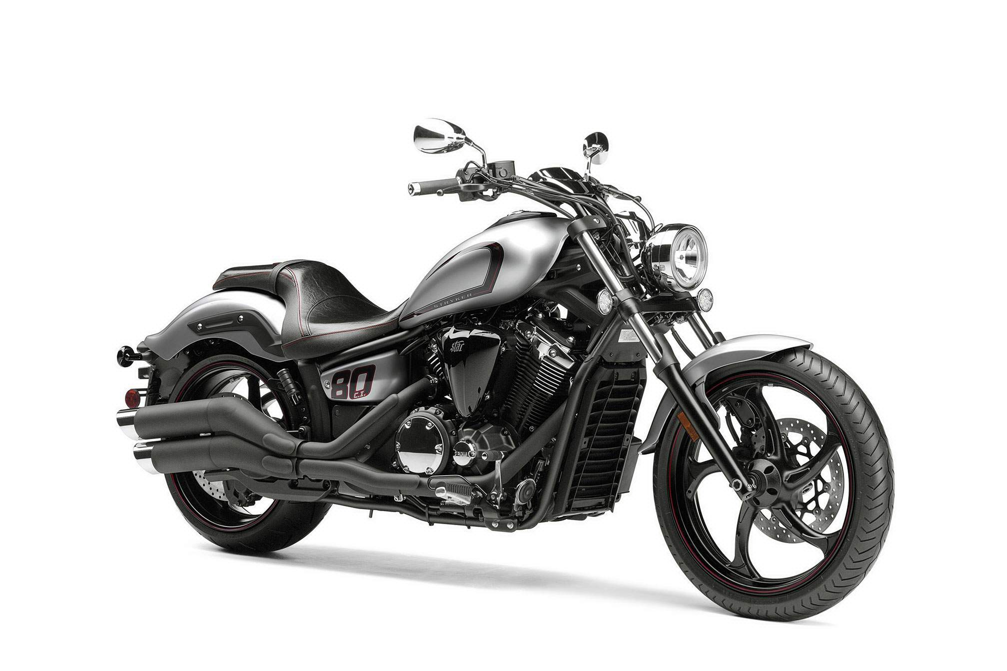 Features 2. A 6-degree yoke anglethe first ever on a Star Motorcyclemakes it possible to achieve that custom raked-out look as well as neutral handling and straight-line cruisability: 33-degree rake plus 6 degrees yoke angle gives total rake of 39 degrees and 102mm of trail. 3. Custom 5-spoke wheels carry a 120/70-21-inch bias tire up front, and a wide, 210/40-18 radial out backthe tallest and widest ever on a Star. 4. Estimated 42 mpg* means this cruiser can go the distance between fill-ups. Power Performance