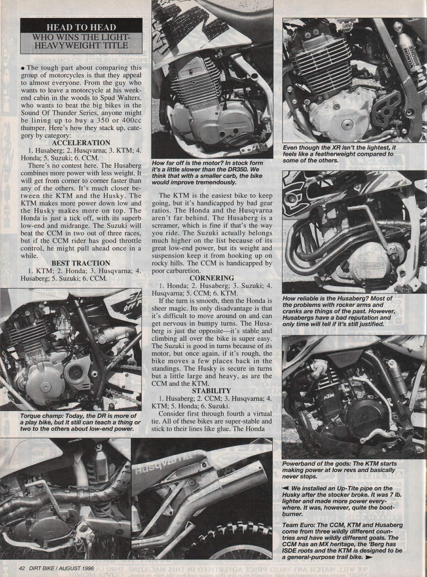 Honda XR400R, Husqvarna WXE410, Husaberg FE400, CCM C25 350, KTM 400EXC & Suzuki DR350 Dirt Bike 1996
